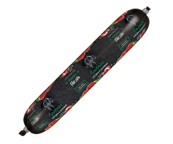 Salami voor honden met lamsvlees en rundvlees is vrij van conserveermiddelen, glutenvrij en bevordert de spijsvertering. Natuurlijk collageen zorgt voor gezonde gewrichten, kraakbeen en vacht. Lams-salami voor honden bevat ook rijst.