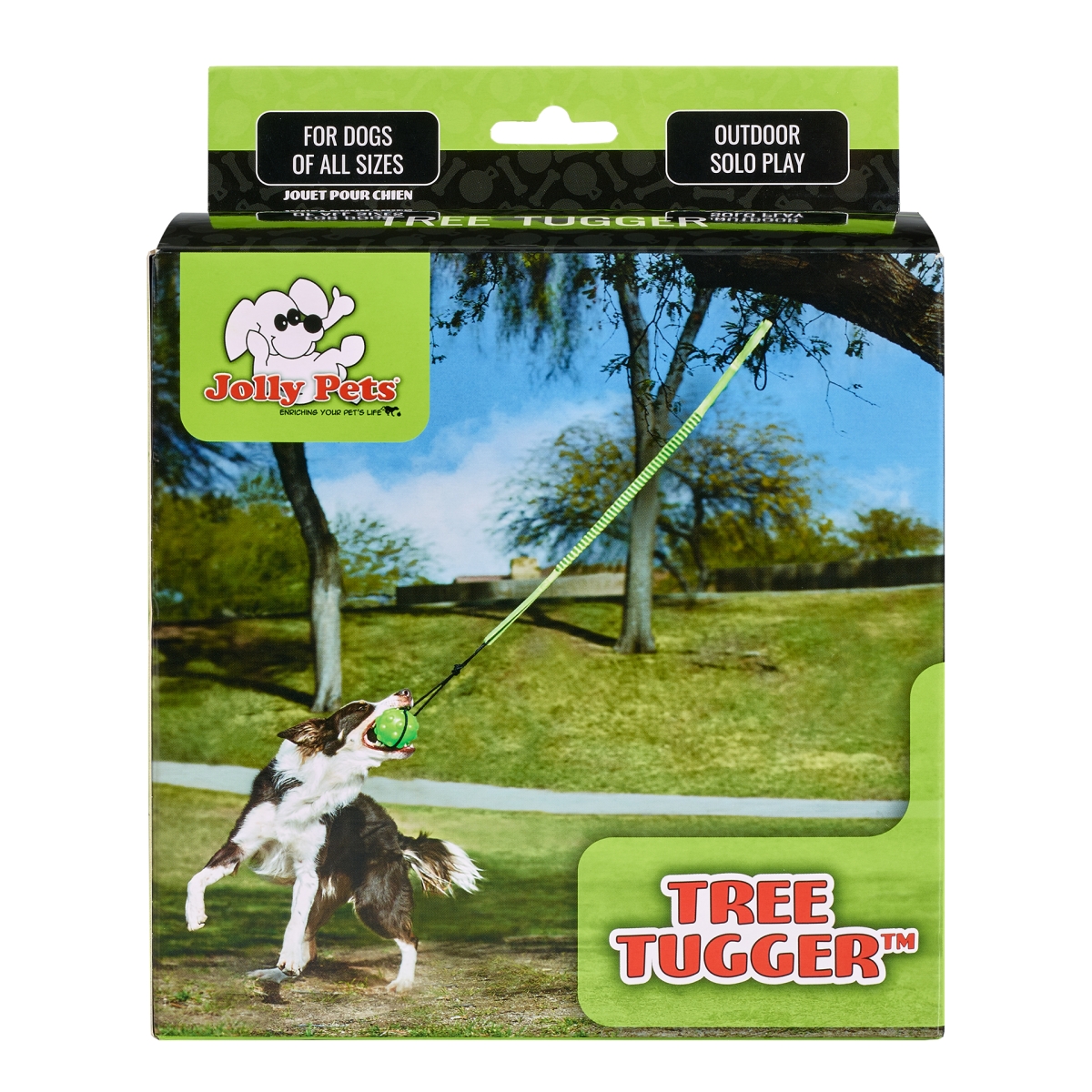 Maak kennis met de nieuwe beste vriend van je hond om alleen mee te spelen! Gooi deze interactieve bungee over een boomtak of een terras op de tweede verdieping en zie hem urenlang springen, gooien en trekken aan de Tree Tugger ™! De Tree Tugger ™ simuleert perfect een spelletje touwtrekken voor honden van elke grootte door het meegeleverde Jolly Jumper™-speeltje te gebruiken of het favoriete speeltje van je pup eraan te bevestigen. De Tree Tugger ™ is geweldig voor stevige kauwers, omdat je de hoogte kunt aanpassen zodat je pup niet constant op het speeltje kan zitten kauwen.