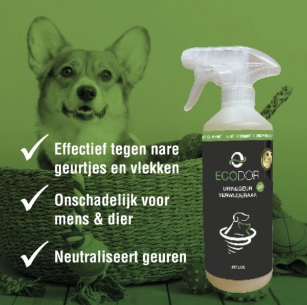 Naast het bestrijden van urinegeur verwijdert Ecodor Geur & Vlekverwijderaar ook vlekken van uitwerpselen en braaksel op vloerkleden, dekens en andere oppervlakken. Spray eenvoudig op de vlek, laat het een minuut inwerken en wrijf na met een schone, droge doek.