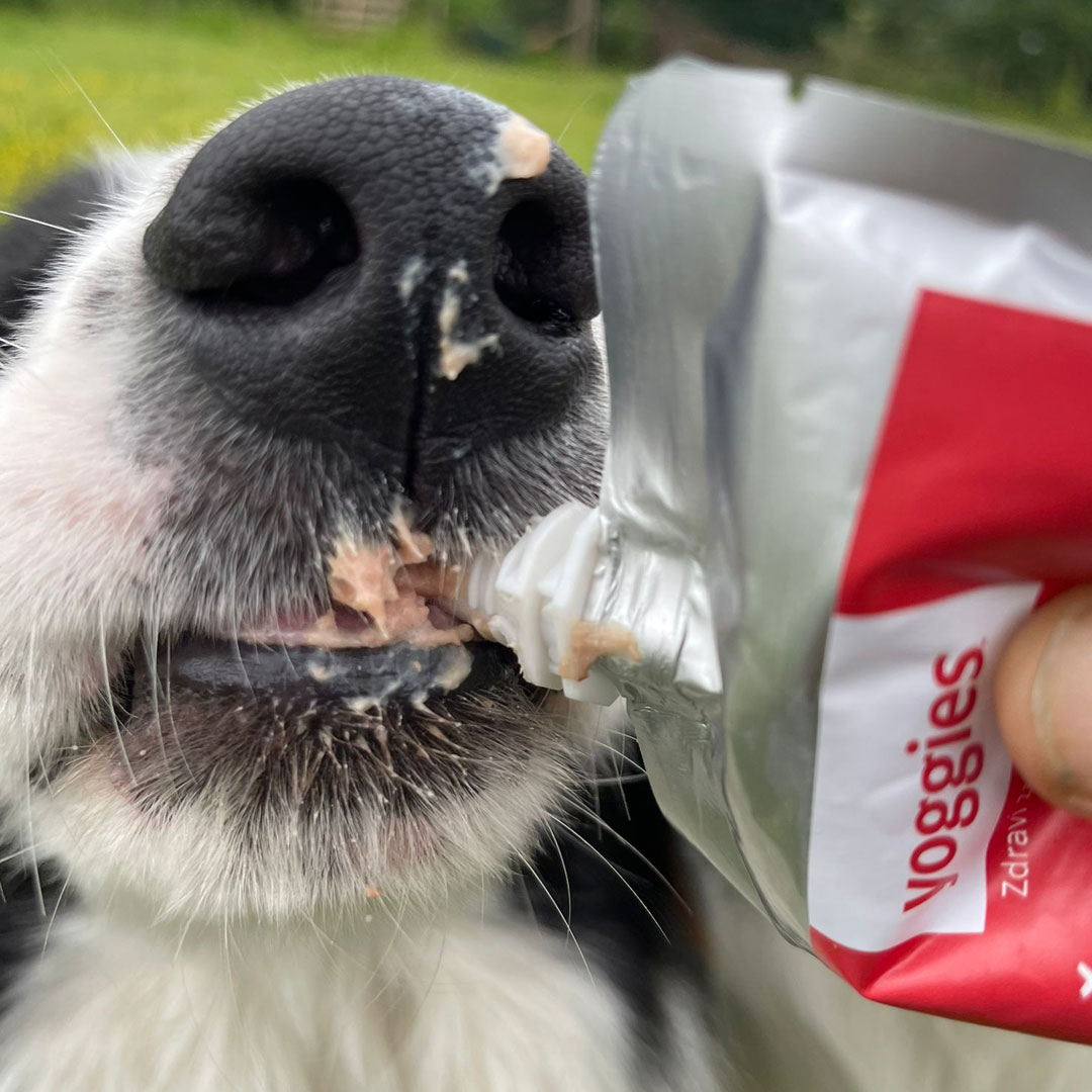 De snacks zijn ook geschikt voor mensen met een allergie, omdat ze geen veelvoorkomende allergenen zoals tarwe of soja bevatten. Het immuunsysteem van sommige partners kan echter overreageren op sommige dierlijke eiwitten. Daarom bieden we vijf verschillende varianten aan: paté met varkensvlees, kip, rundvlees, kalkoen en een visduo van zalm en witte vis. Zo vindt iedereen de juiste variant.