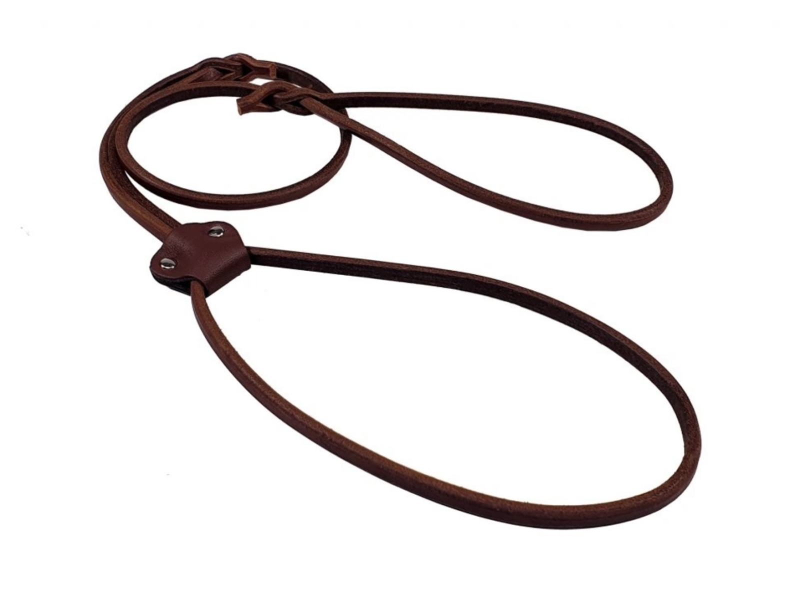 De showlijnen zijn gemaakt van stevig rond leer. Bij lijnen met een diameter van 4 mm zijn de verbindingen in het oor en de ogen stevig bevestigd met een plaatje, bij lijnen met een diameter van 6 mm en 8 mm zijn ze stevig verweven in het oor en in de lus. De lus is voorzien van een leren schuifgedeelte waarmee u hem omhoog en omlaag kunt bewegen, waardoor de omtrek van de lus kleiner of groter wordt, afhankelijk van de behoeften en de nekomtrek van de hond. De lijnen zijn geschikt voor middelgrote en grote rassen. Het leer moet worden verzorgd met geschikte producten die speciaal voor leer zijn bedoeld.