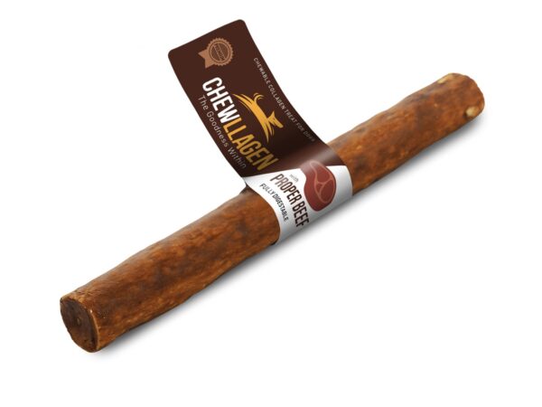 Chewllagen is een hondensnack gemaakt van collageen dat wordt gewonnen uit de huid van Zuid-Amerikaans grasgevoerd rund.