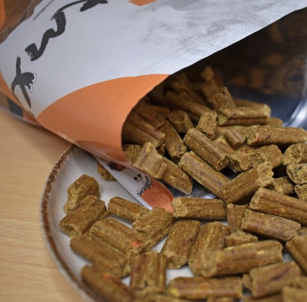 De praktische pelletvorm zorgt voor een gemakkelijke portionering en de delicate smaak draagt bij aan een