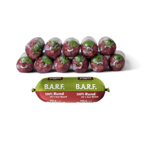 1800 g (12x150g) Yoggies BARF 100% rundvlees met probiotica Rauw vlees voor honden