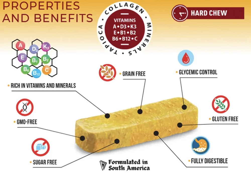 โ€ข Zachter & Veiliger voor langdurig kauwen: In tegenstelling tot harde geweien of botten, wordt deze bar zachter naarmate je hond erop kauwt. Dit maakt het een veilige optie voor honden vanaf 12 weken oud.