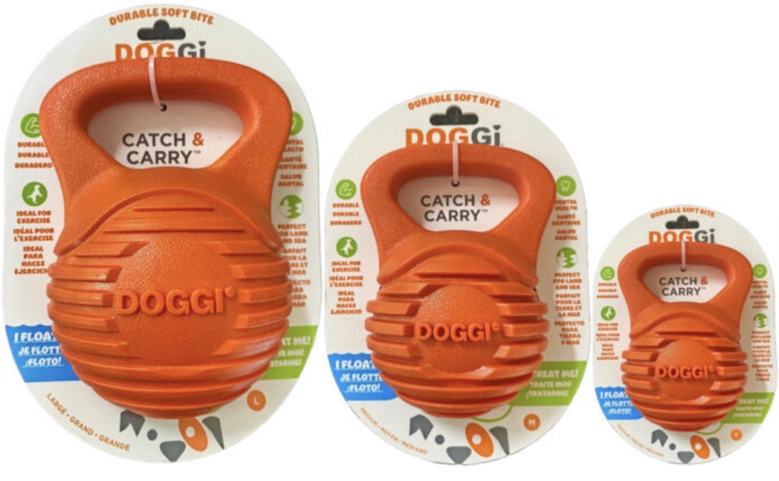 Het Doggi Catch & Carry haltervormige speeltje is gemaakt van stevig thermoplastisch rubber (TPR). Het is superduurzaam, scheur- en slijtvast en heeft een handvat waardoor het beter in de bek van de hond te pakken is. De textuur voelt prettig aan in de bek en is voorzien van groeven die de gebitsgezondheid bevorderen. Aan de onderkant zit een opening om de favoriete snoepjes van de hond te kunnen geven.