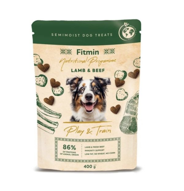 Super premium hartvormige hondensnacks Play & Train met vers rund- en lamsvlees. De halfzachte snacks zijn geschikt voor pups vanaf 4 maanden. De hondensnacks zijn tarwe- en maรฏsvrij.
