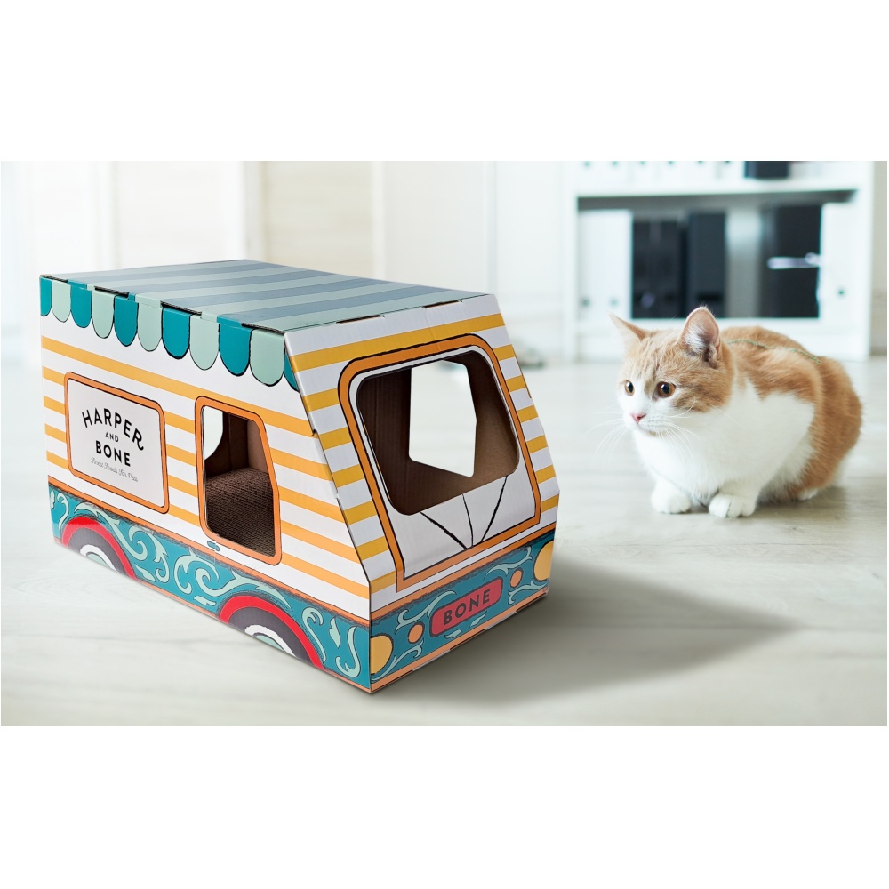 Kartonnen kattenhuis in de vorm van een auto. Binnenin voorzien van een krabpaal voor urenlang speelplezier voor uw kat.