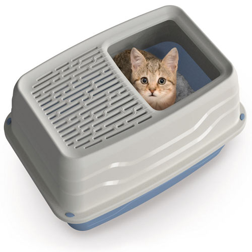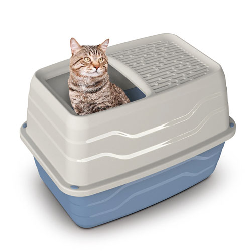 Grote kattenbak met in- en uitgang aan de bovenzijde . Maat: 56x40x38cm Kleur: Blauw