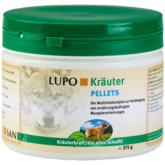 Bij dagelijkse supplement zorgen LUPO®-kruiden voor: Verbeter de opname van voedingsstoffen Gezonde huid Glanzende vacht Een optimale stofwisseling Regulatie en reiniging van het spijsverteringskanaal Regelmatig natuurlijk legen van de anale zak Ondersteuning van het eigen immuunsystee