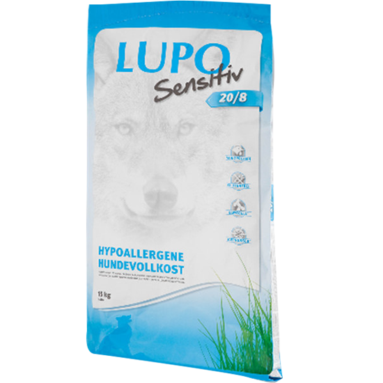 Onze LUPO Sensitiv 20/8 is vervaardigdDroogvoer geproduceerd met behulp van een speciaal proces om de voedingsstoffen te behouden .