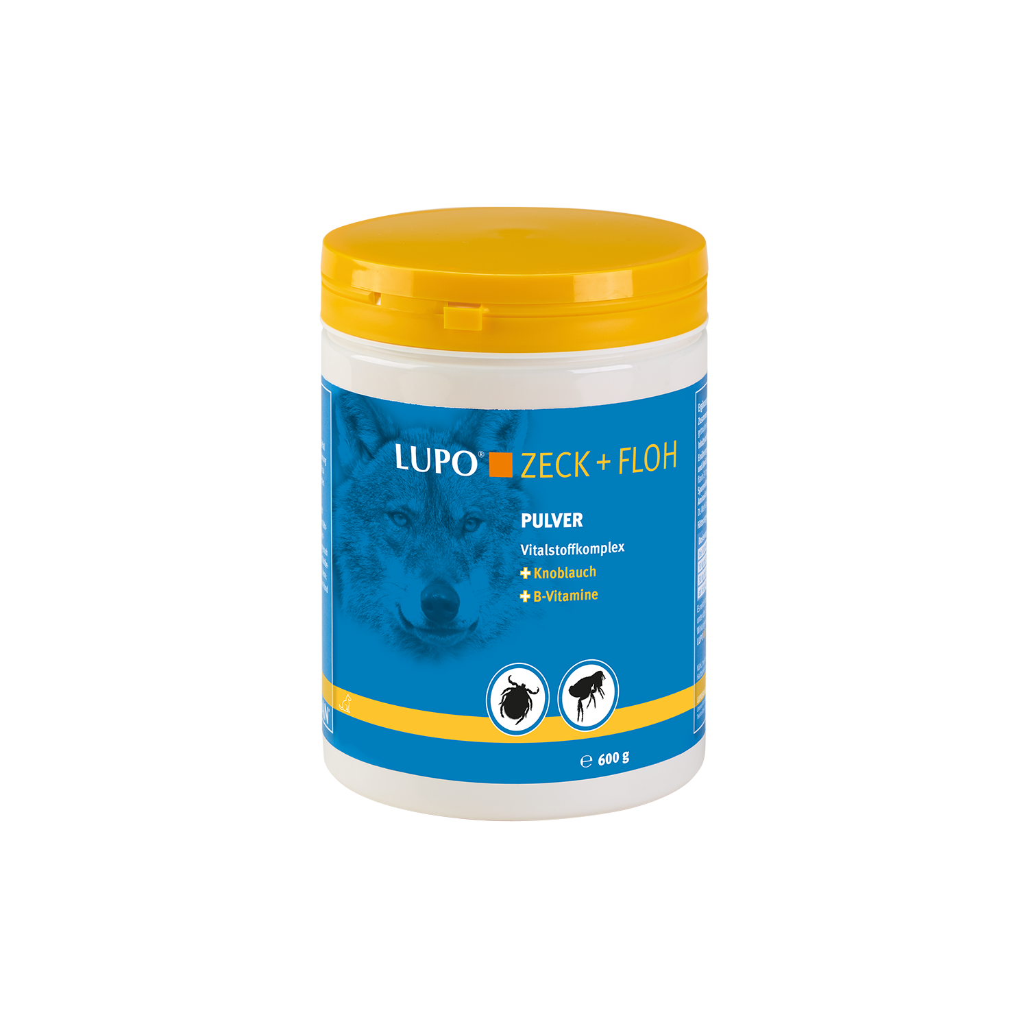 LUPO ZECK + FLOH poeder is een complex van verschillende natuurlijke vitale stoffen, aangevuld met micronutriรซnten die kunnen bijdragen aan het normaal functioneren van de huid en het immuunsysteem. Het beste voor uw hond bij een parasietenplaag is een sterk immuunsysteem โ€“ voor een gezonde hond met een gezonde huid!