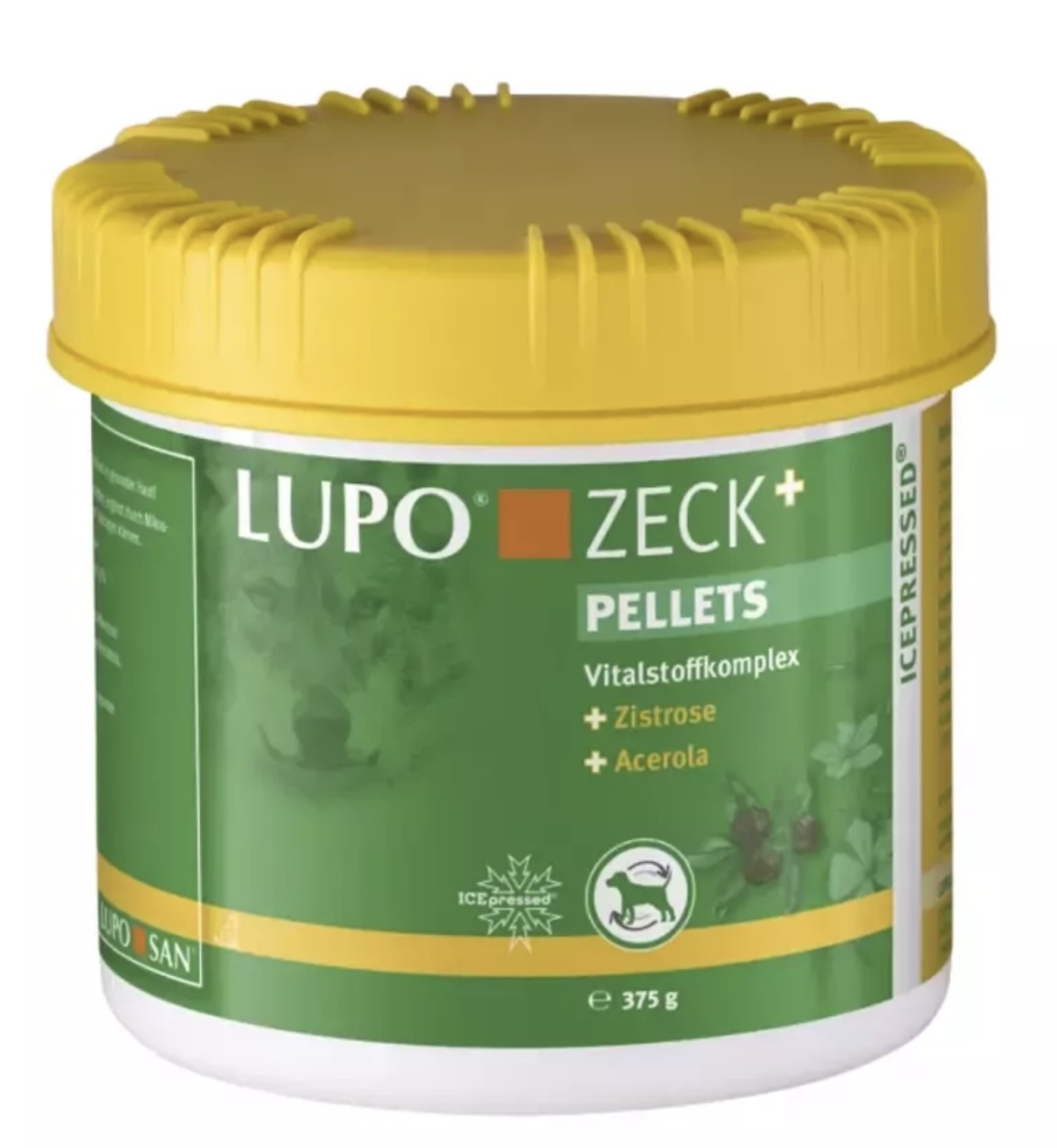Luposan Lupo Zeck+ is een complex van verschillende natuurlijke stoffen, aangevuld met micronutriënten, die bijdragen aan de werking van de huid en het immuunsysteem.