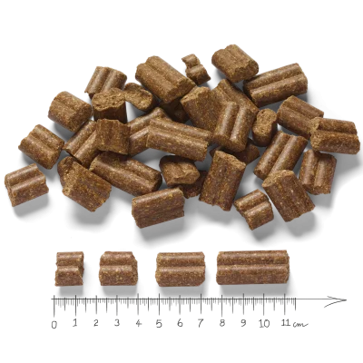 Onze informatie is slechts een richtlijn voor een evenwichtige en op de behoeften afgestemde voeding voor uw hond. Hoewel deze instructies zijn opgesteld volgens de laatste wetenschappelijke inzichten voor hondenvoer dat is geproduceerd met een zorgvuldig gebruik van vitale stoffen, dienen ze toch absoluut te worden aangepast aan de individuele behoeften van de hond. Met één enkele grammeting kunt u onmogelijk rekening houden met alle individuele verschillen en omstandigheden, zoals ras, leeftijd en grootte van de hond, trainingsprestaties, omgevingsinvloeden, etc. Vers water moet altijd beschikbaar zijn.