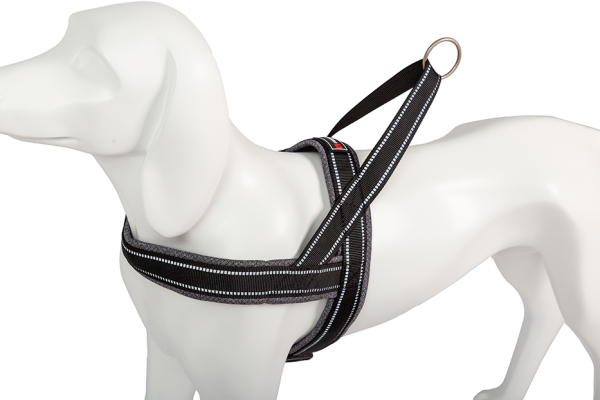 Zacht Harnas gemaakt van hoogwaardig nylon, ademend, reflecterend, opgevuld met schuimrubber voor het grootste comfort van uw huisdier. Verkrijgbaar in verschillende maten en kleuren. Het is gemakkelijk te wassen, met de hand of in de wasmachine.