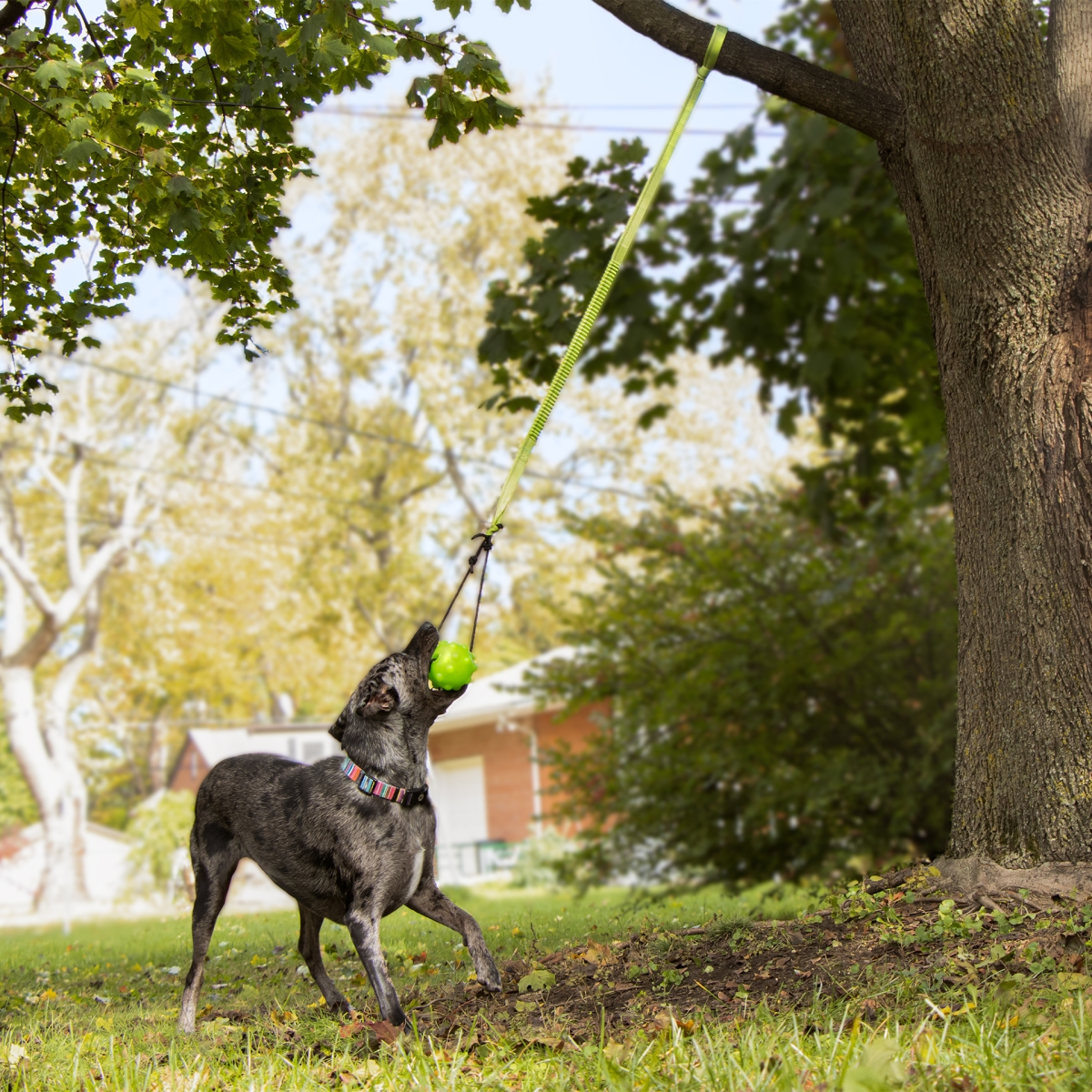 Maak kennis met de nieuwe beste vriend van je hond om alleen mee te spelen! Gooi deze interactieve bungee over een boomtak of een terras op de tweede verdieping en zie hem urenlang springen, gooien en trekken aan de Tree Tugger โ„ข! De Tree Tugger โ„ข simuleert perfect een spelletje touwtrekken voor honden van elke grootte door het meegeleverde Jolly Jumperโ„ข-speeltje te gebruiken of het favoriete speeltje van je pup eraan te bevestigen. De Tree Tugger โ„ข is geweldig voor stevige kauwers, omdat je de hoogte kunt aanpassen zodat je pup niet constant op het speeltje kan zitten kauwen.