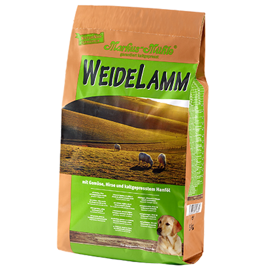 Markus-Mühle WEIDELAMM is onze nieuwste creatie op basis van lamsvlees, hennepzaad en witte visolie – bijzonder rijk aan waardevolle vetzuren, voedingsrijke groenten en andere zorgvuldig geselecteerde natuurlijke ingrediënten. Aangevuld met lijnzaad en aangevuld met mosselvleesextract van Perna Canaliculus en silica, biedt het nutritionele ondersteuning voor botten en gewrichten en kan het de stofwisseling optimaliseren.