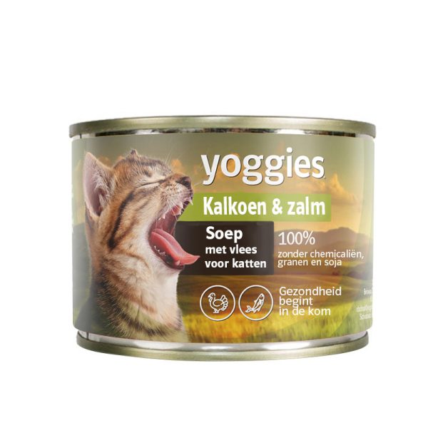Ingrediënten: kalkoen (spier, hart, lever, maagjes) 50%, bouillon 29%, zalm 20%, mineralen, visolie 0,2%.